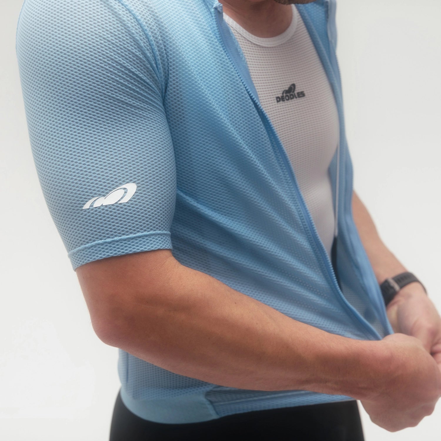 Disclaimer: This jersey uses a lightweight material. The models seen are wearing a base layer to prevent too much skin from showing. The lighter colorways especially benefit from pairing with the base layer.